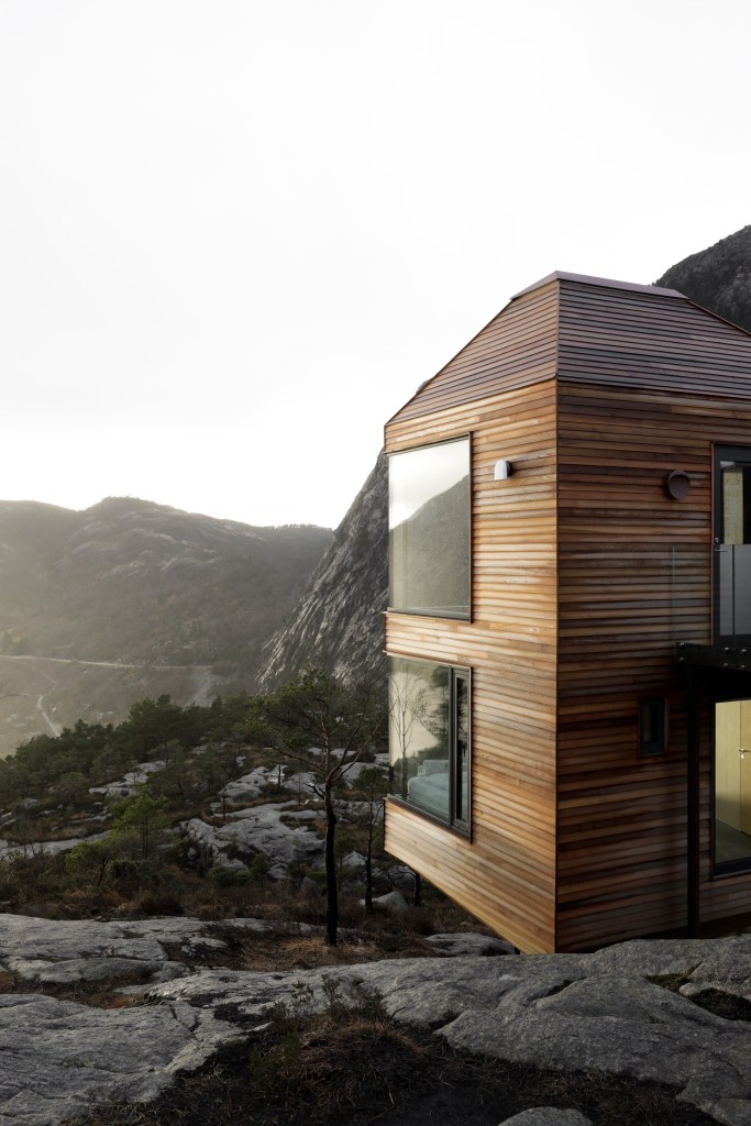 Ved enden av Lysefjorden ligger fire nye turisthytter, skapt for å blende inn med den omkringliggende naturen. Stylten, Myra, Stjerna og Eldhuset er alle løftet opp fra bakken, stående på betongpilarer med en uslåelig utsikt fra de store glassfasadene.