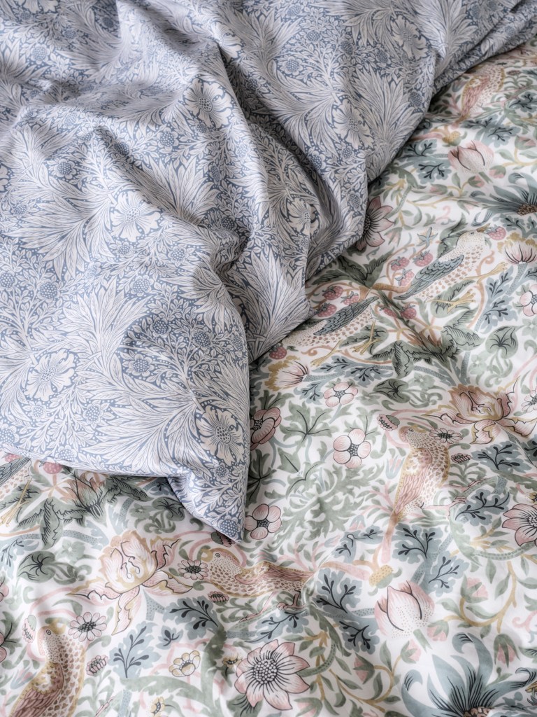 I fjor presenterte Mille Notti sin første kolleksjon med sengetøy basert på to av den britiske designlegenden William Morris tidløse mønstre. Nå gjør de det igjen med de klassiske mønstrene Strawberry Thief og Marigold.