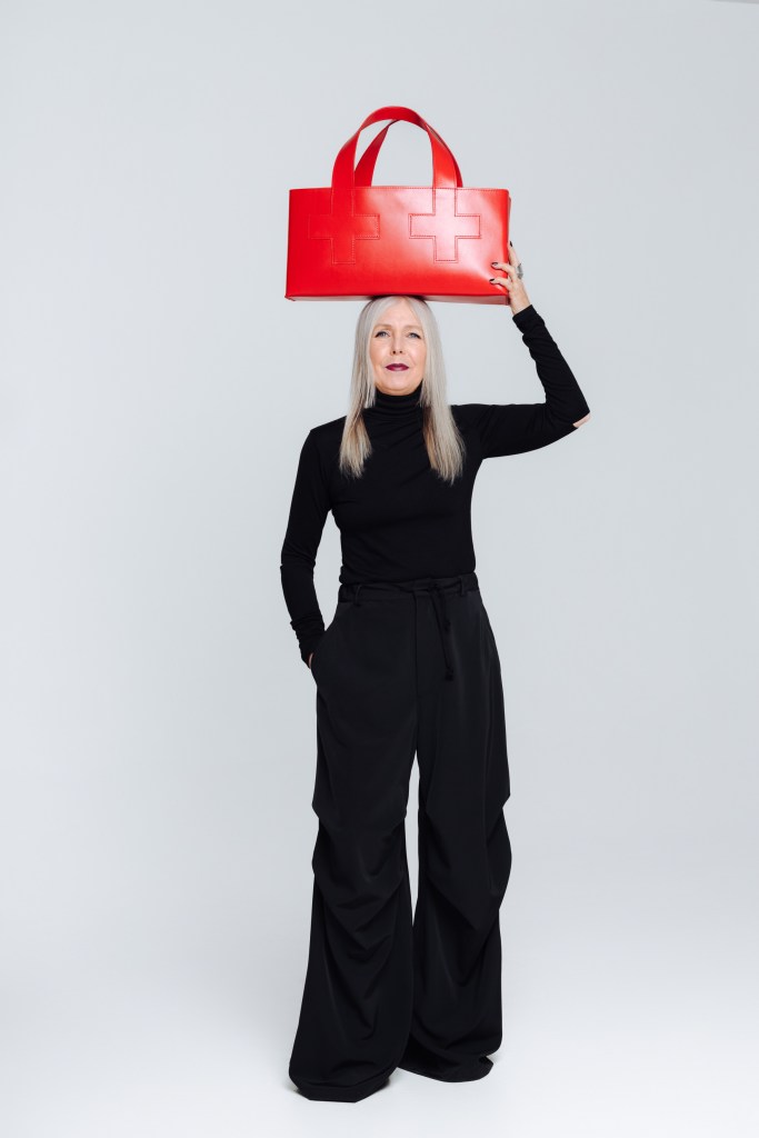 Kjent for sine ikoniske kors, har også denne gangen Pia inkludert de i sin design. Hun har skapt en veske av farget lær, og bruken av store kors gjør vesken både er minimalistisk og maksimalististisk på samme tid. Pia forteller at rødfargen føltes naturlig da den både signaliserer fare og kjærlighet.